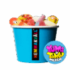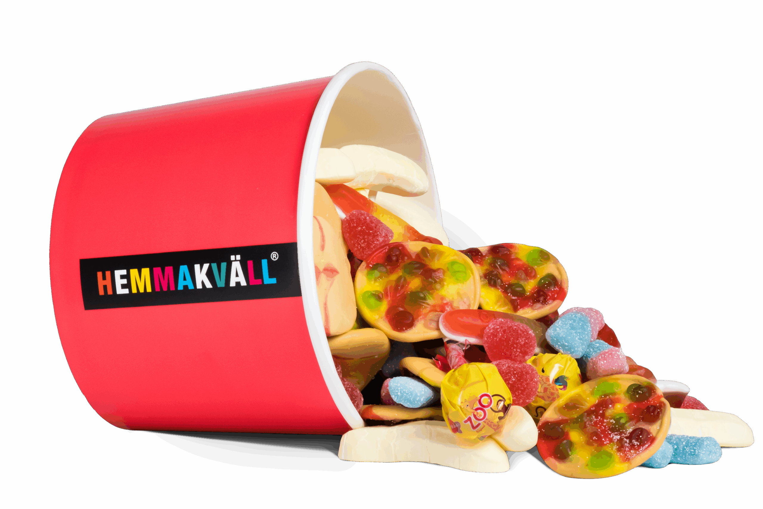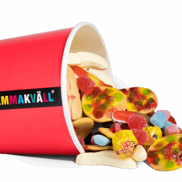 Patroner sura: Socker, glukossirap, surhetsreglerande medel (äppelsyra), arom, färgämne (E100, E120, E131).